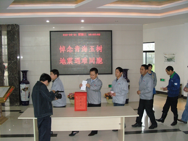 2010年4月14日青海玉樹發(fā)生里氏7.1級地震,災(zāi)區(qū)的信息牽動(dòng)著公司每個(gè)員工的心,公司員工陸續(xù)通過各種方式向地震災(zāi)區(qū)表達(dá)自己的一份心意。4月21日舉國哀悼,下午4:00,公司組織員工對青海玉樹的同胞們進(jìn)行捐款,捐款前公司員工對地震中的遇難者進(jìn)行默哀。共有326人參與本次活動(dòng),所得善款共計(jì)15885元,善款將通過銅陵市紅十字會(huì)送達(dá)災(zāi)區(qū)。